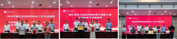 开幕式上,表彰了2024年度浙江省高校实验室工作先进集体和个人、浙江省第五届高校教师教学创新大赛实验技能专项赛获奖者以及2024年度学校实验室安全工作先进集体和个人。